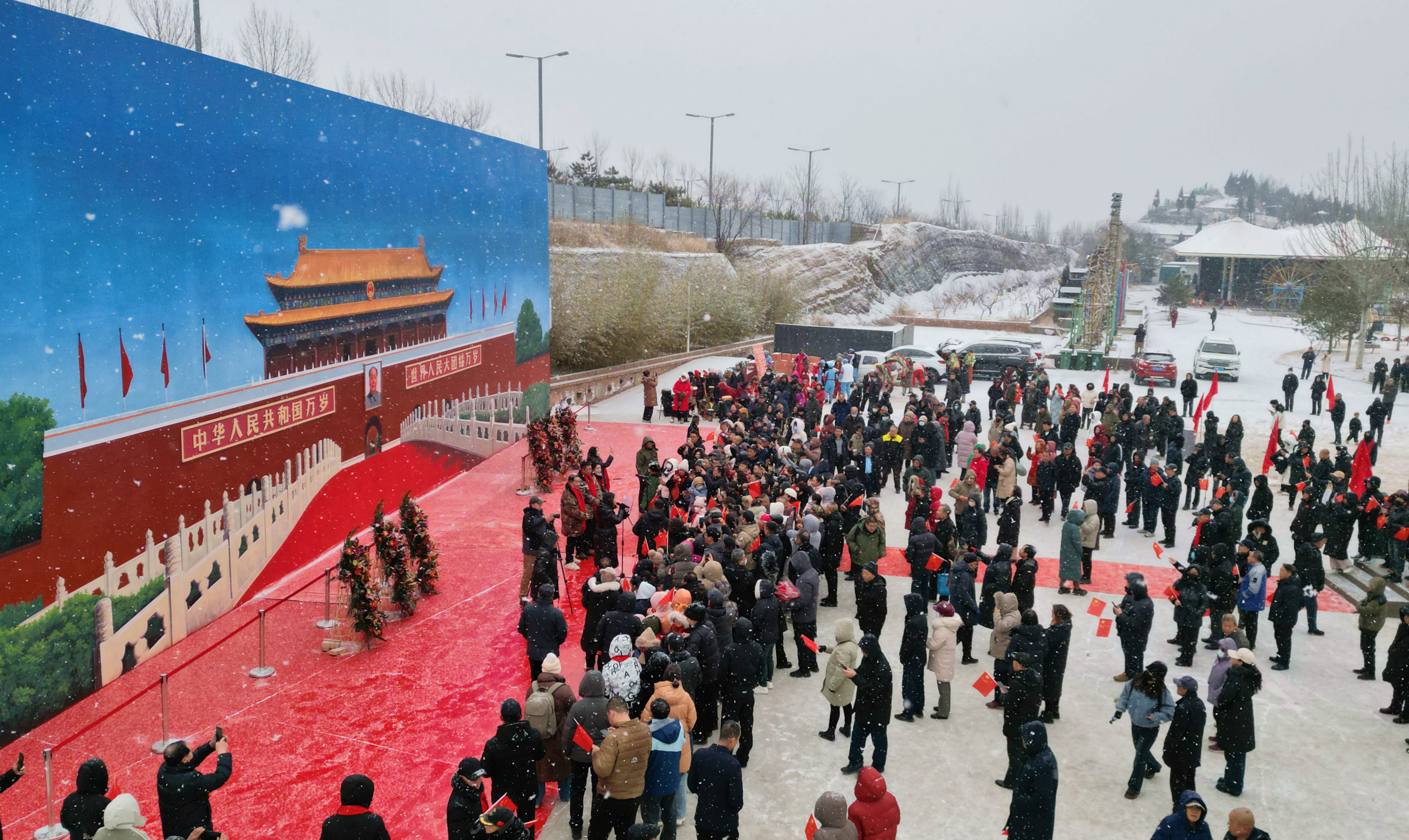 雪中添彩!巨幅墻繪落成